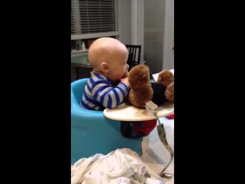 He is now able to sit in the bumbo pretty securely which is nice on my arm and back. His 4 months check up was on 4/13. He weighed 13lb 12oz.